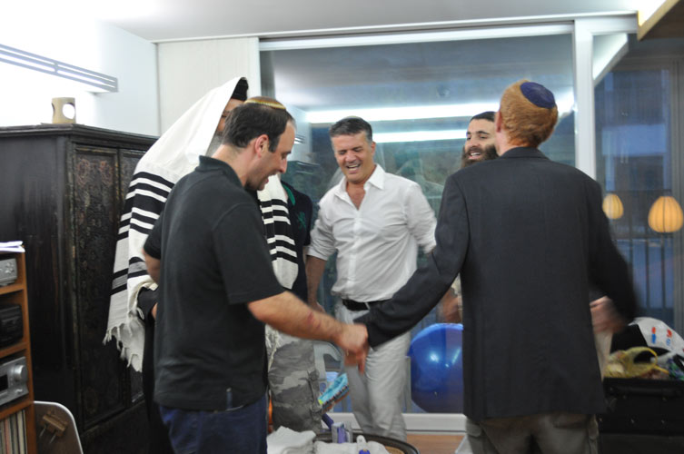 The Mohel, Rabbi Mordechai Kuperman recite the blessing at the Brit